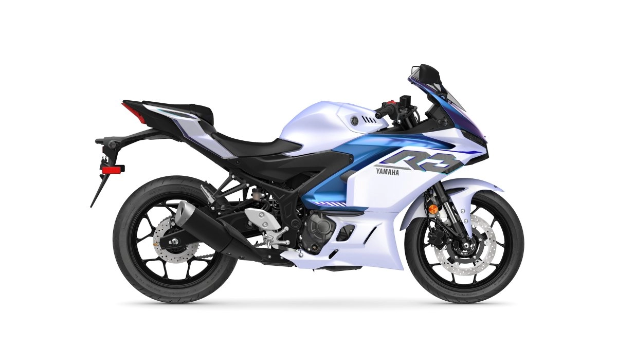 Inspired by the flowing aerodynamics of Yamaha's YZR-M1 MotoGP® race bike, the new 2025 YZF-R3's distinctive R-Series pedigree is recognizable at a glance with its aggressive new front fairing, sleek new side panels and a sporty new tail section with signature R-series tail wing.